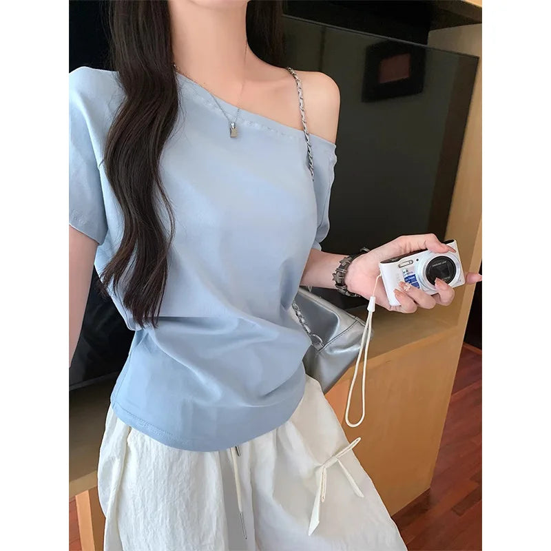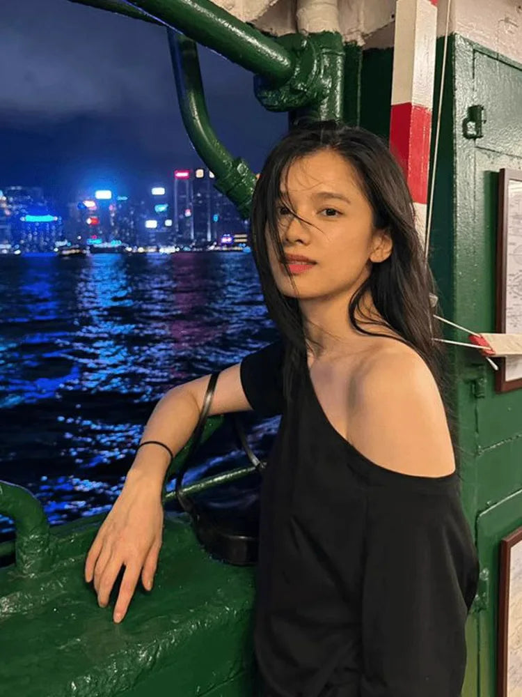 2025 Autumn new off shoulder long sleeve women casual T-shirts solid casual vintage simple streetwear basic top