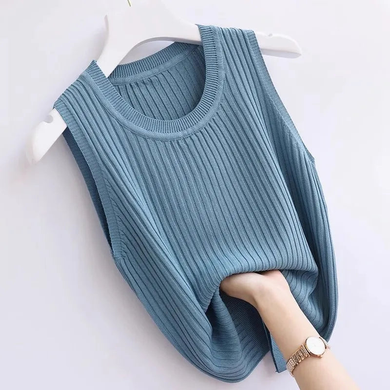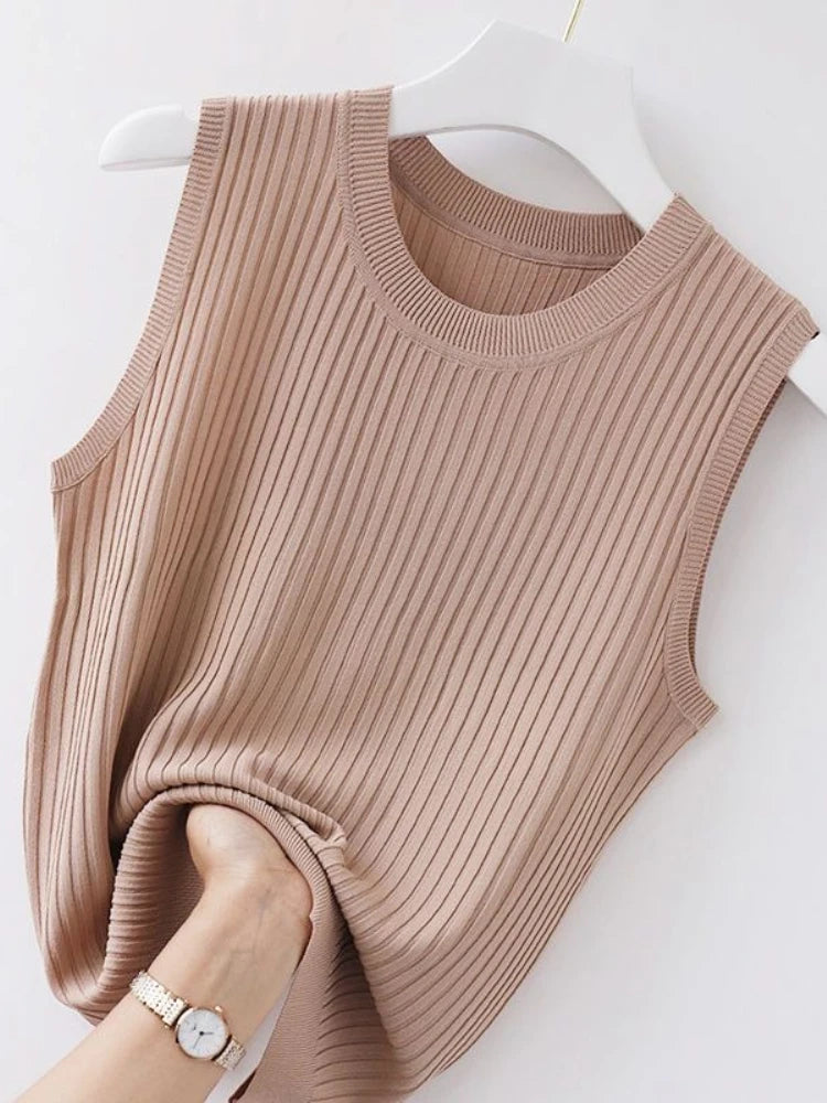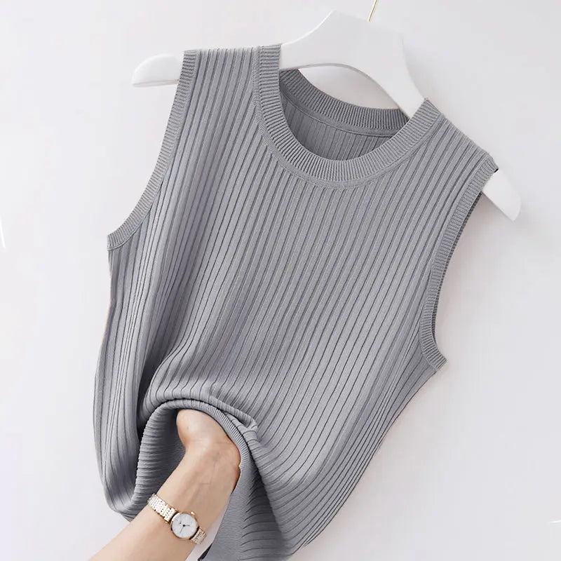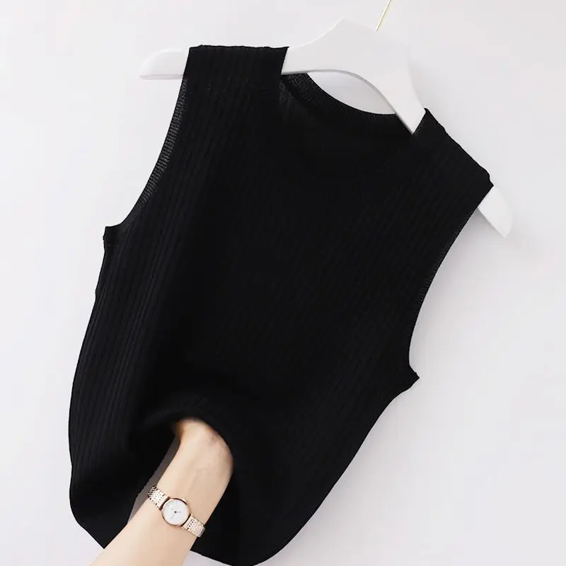 2025 Women Comfortable Solid ColorCamisole Laides Summer Bottoming WhiteShort Knitted Sleeveless Top