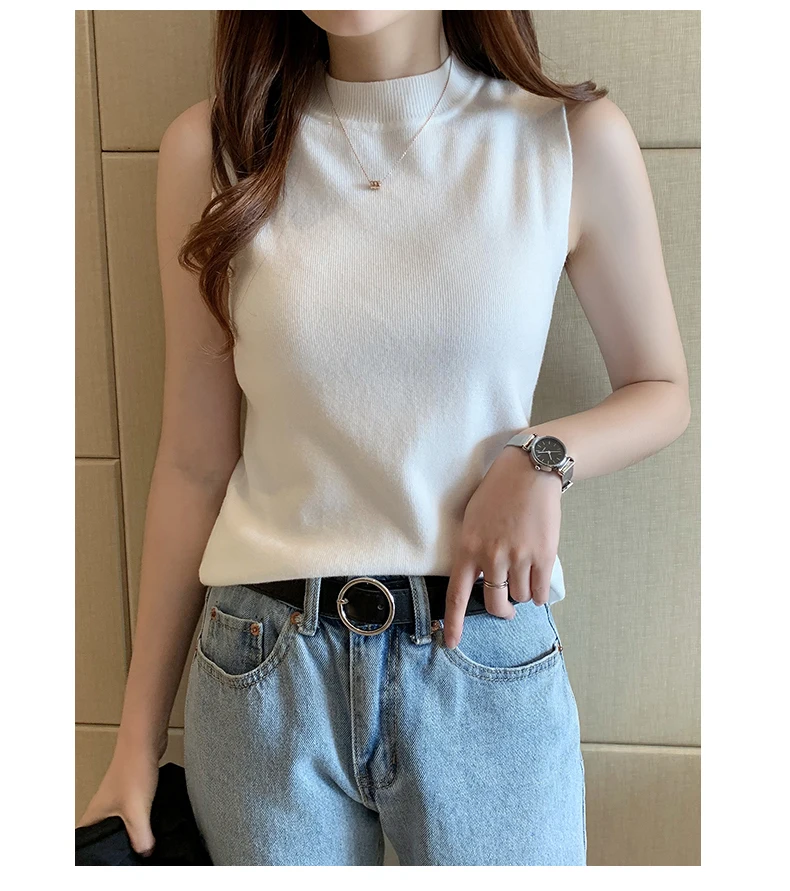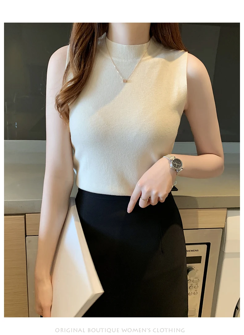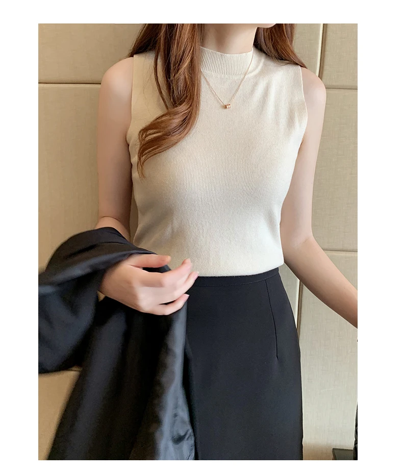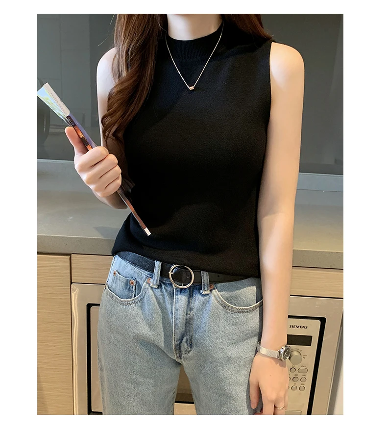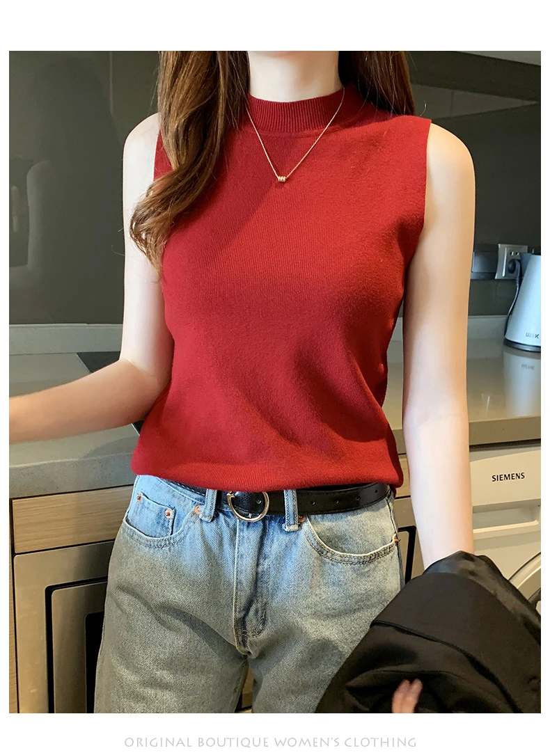 AOSSVIAO 2025 Summer Versatile Knit Sleeveless Tops Women Basic Solid Tank Tops Casual O-neck Slim Thin Tees Female Tops Vest