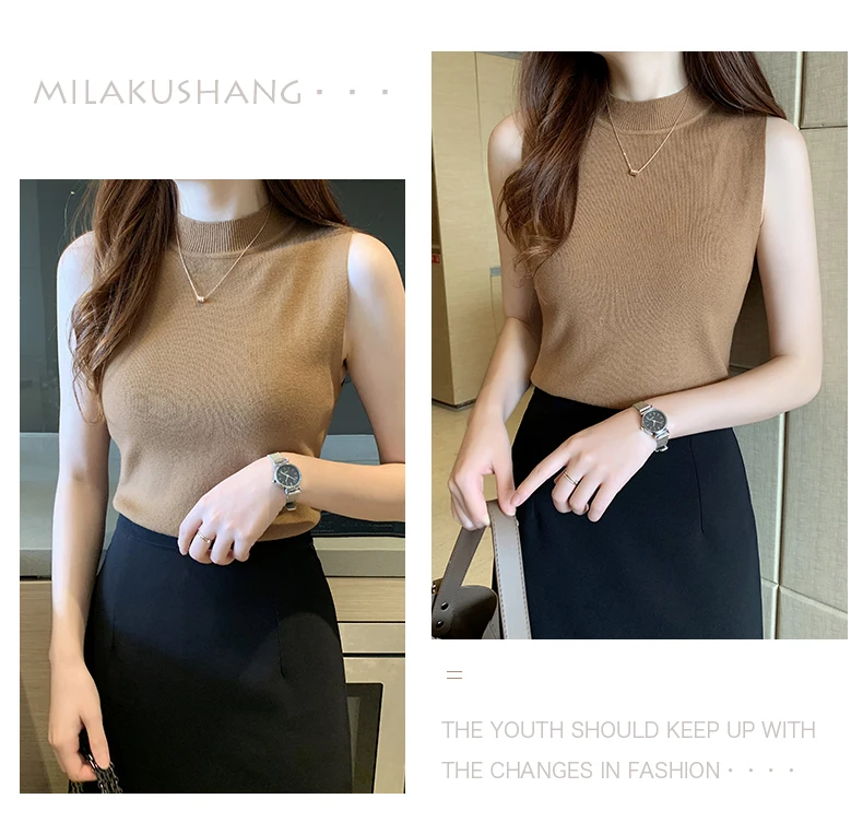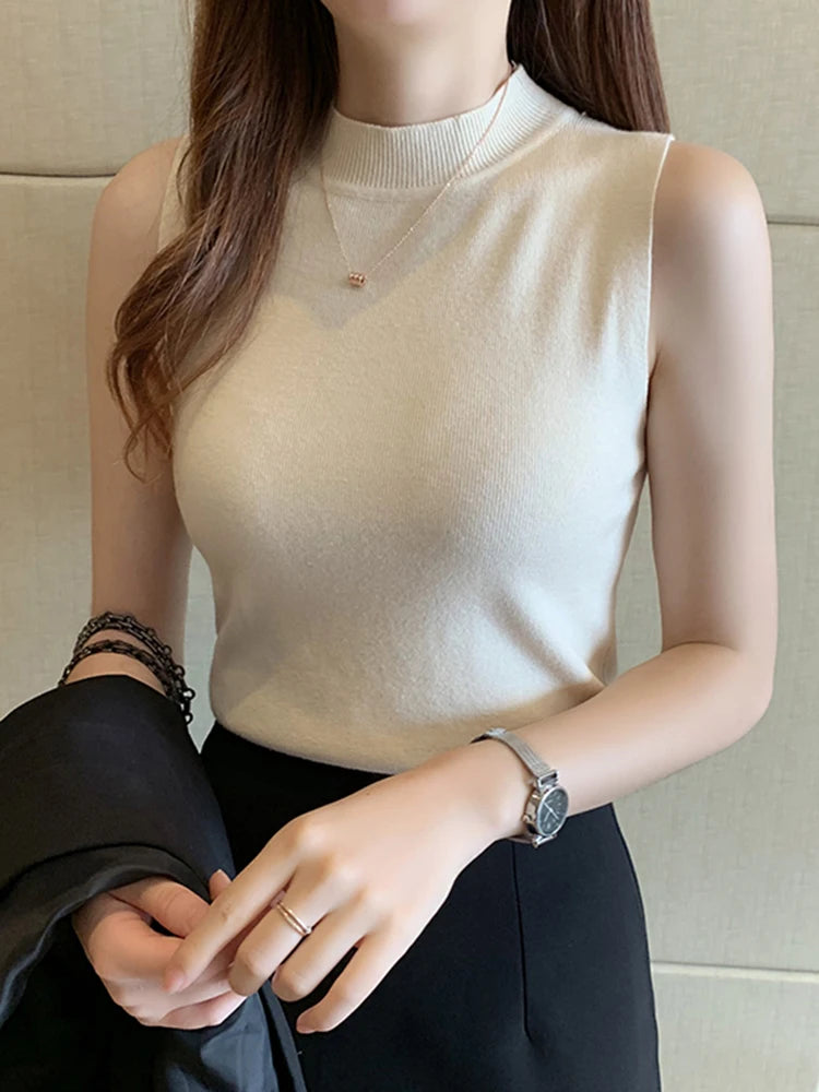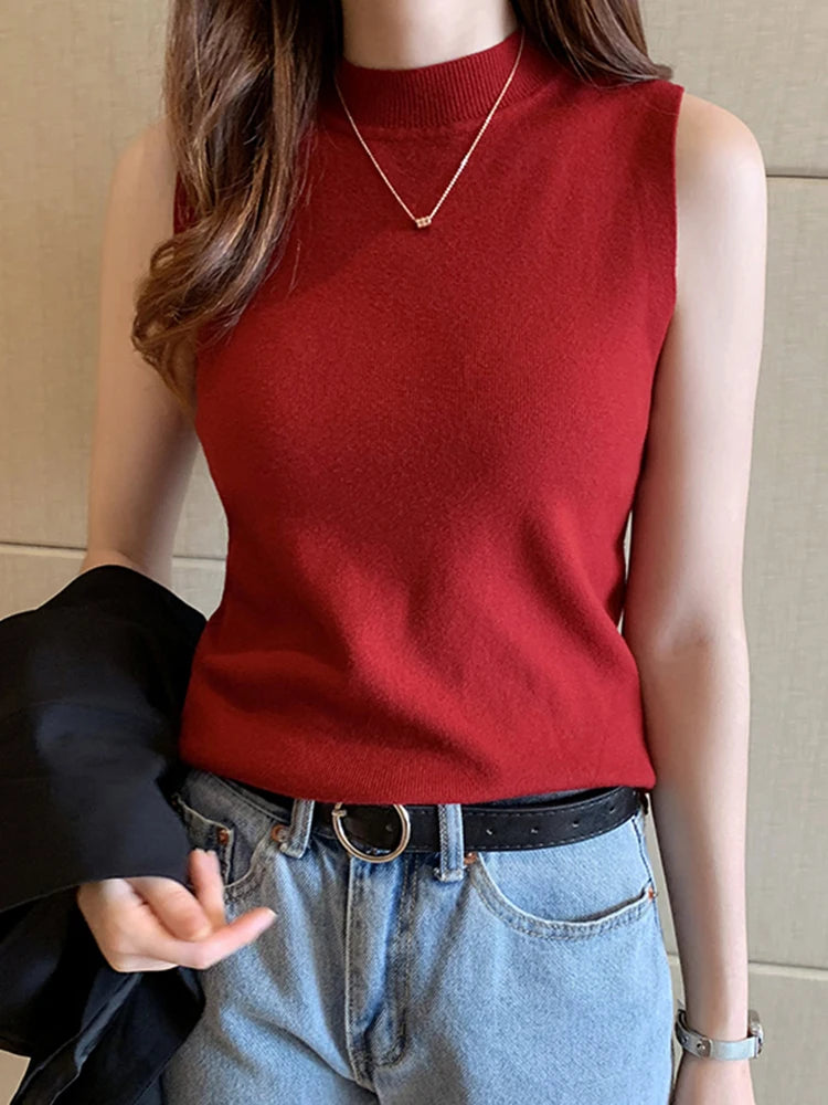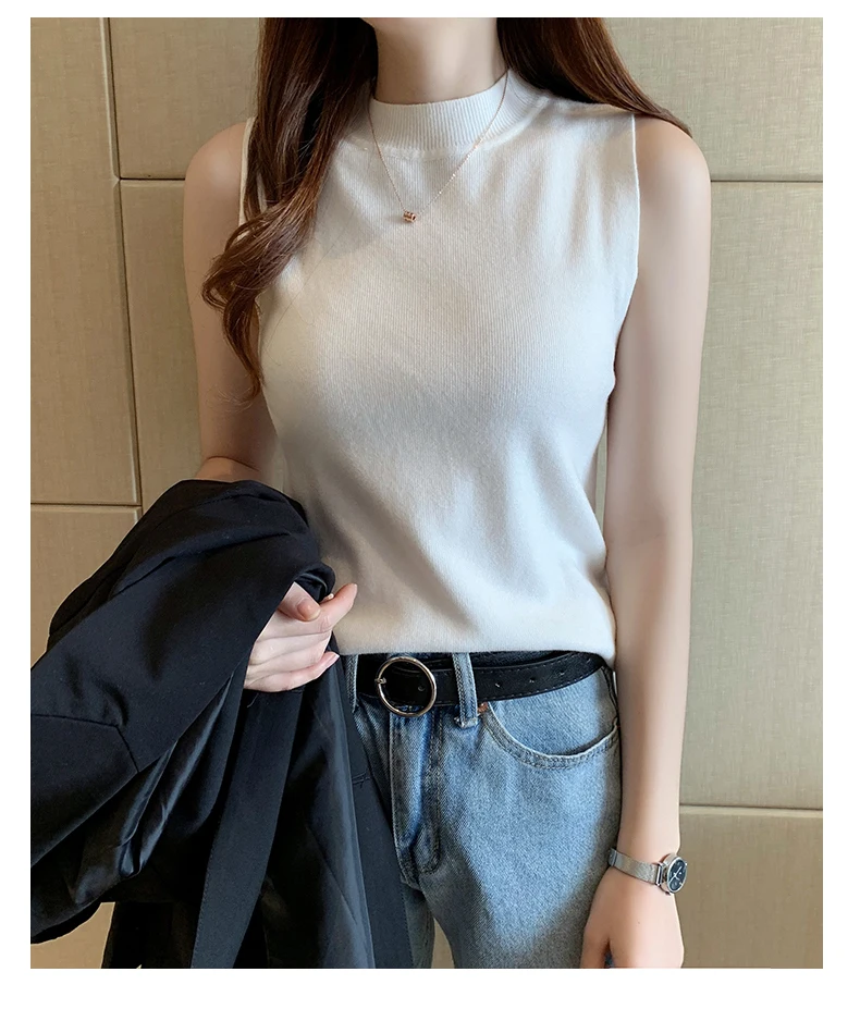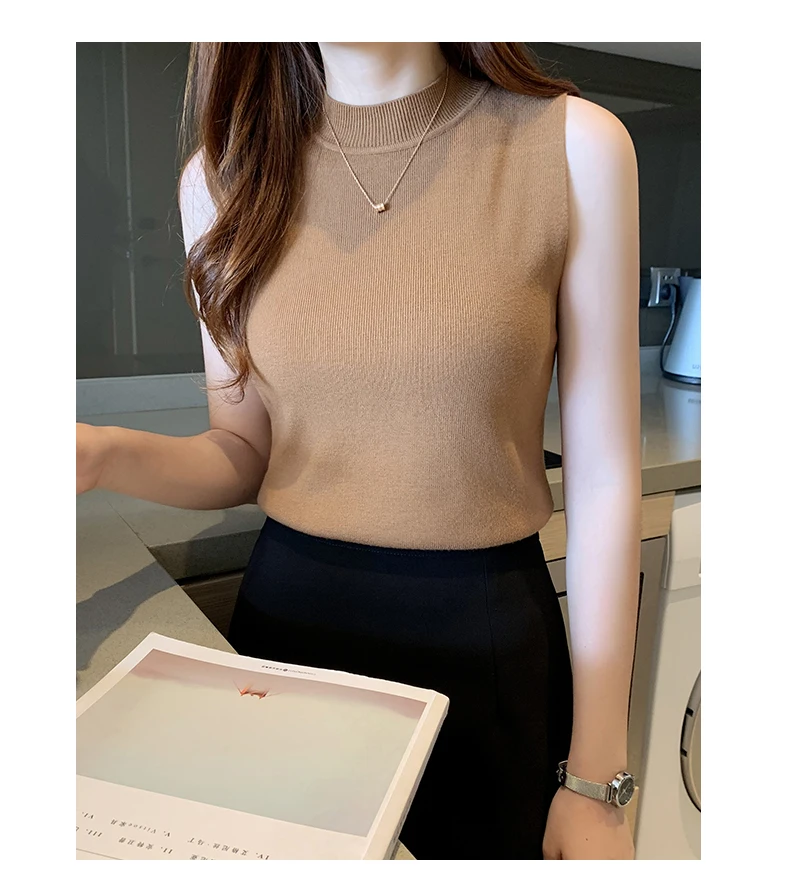 AOSSVIAO 2025 Summer Versatile Knit Sleeveless Tops Women Basic Solid Tank Tops Casual O-neck Slim Thin Tees Female Tops Vest
