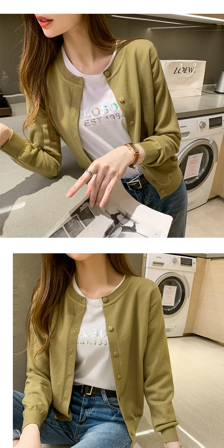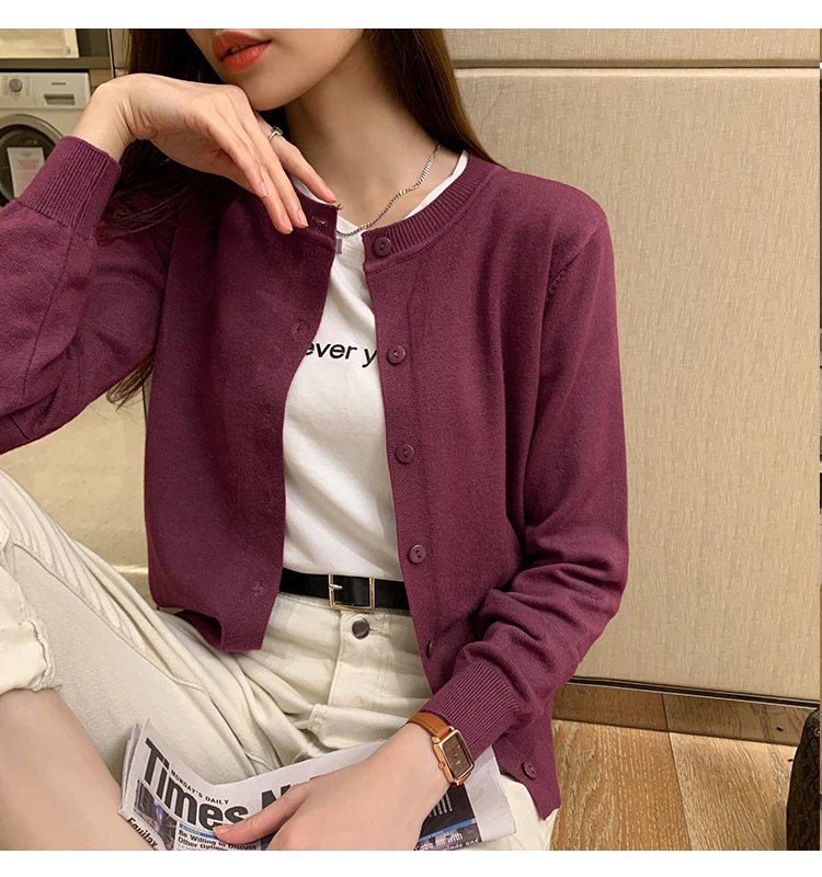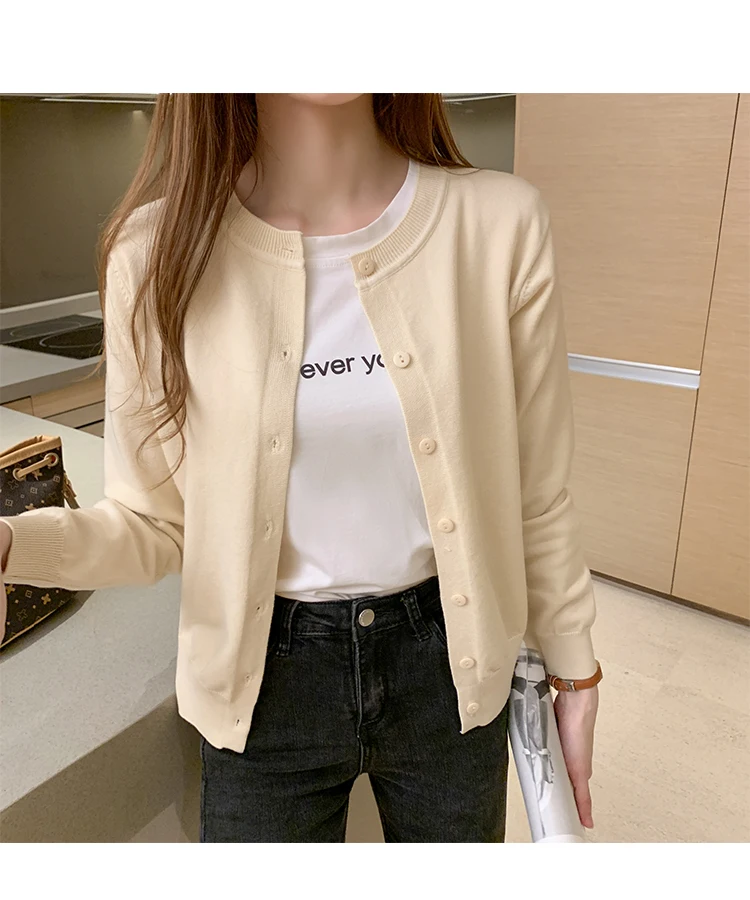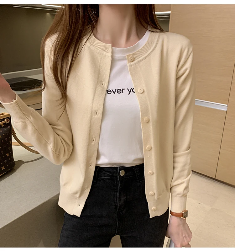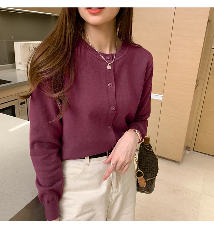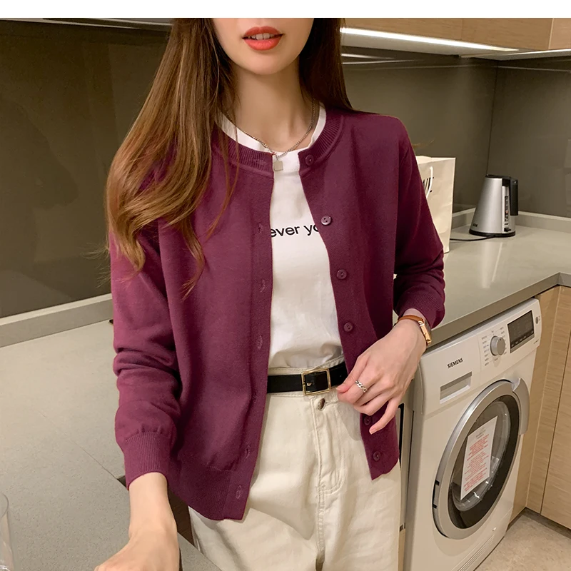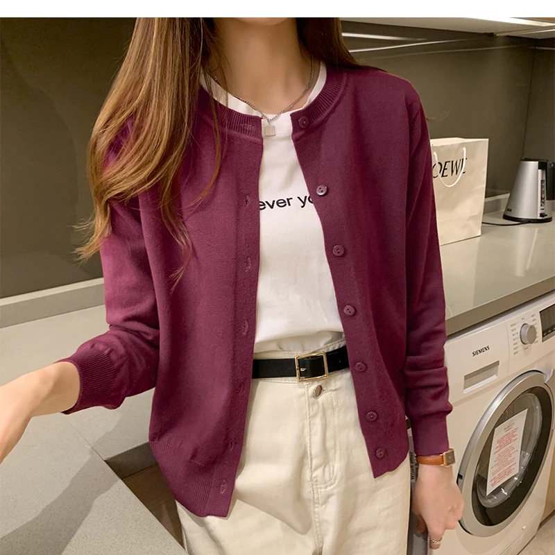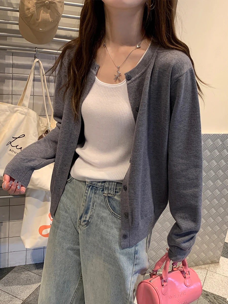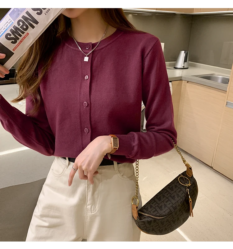 AOSSVIAO Women Knitted Cardigan Sweater 2025 Autumn O-Neck Casual Cardigans Woman Solid Color Slim Korean Versatile Tops