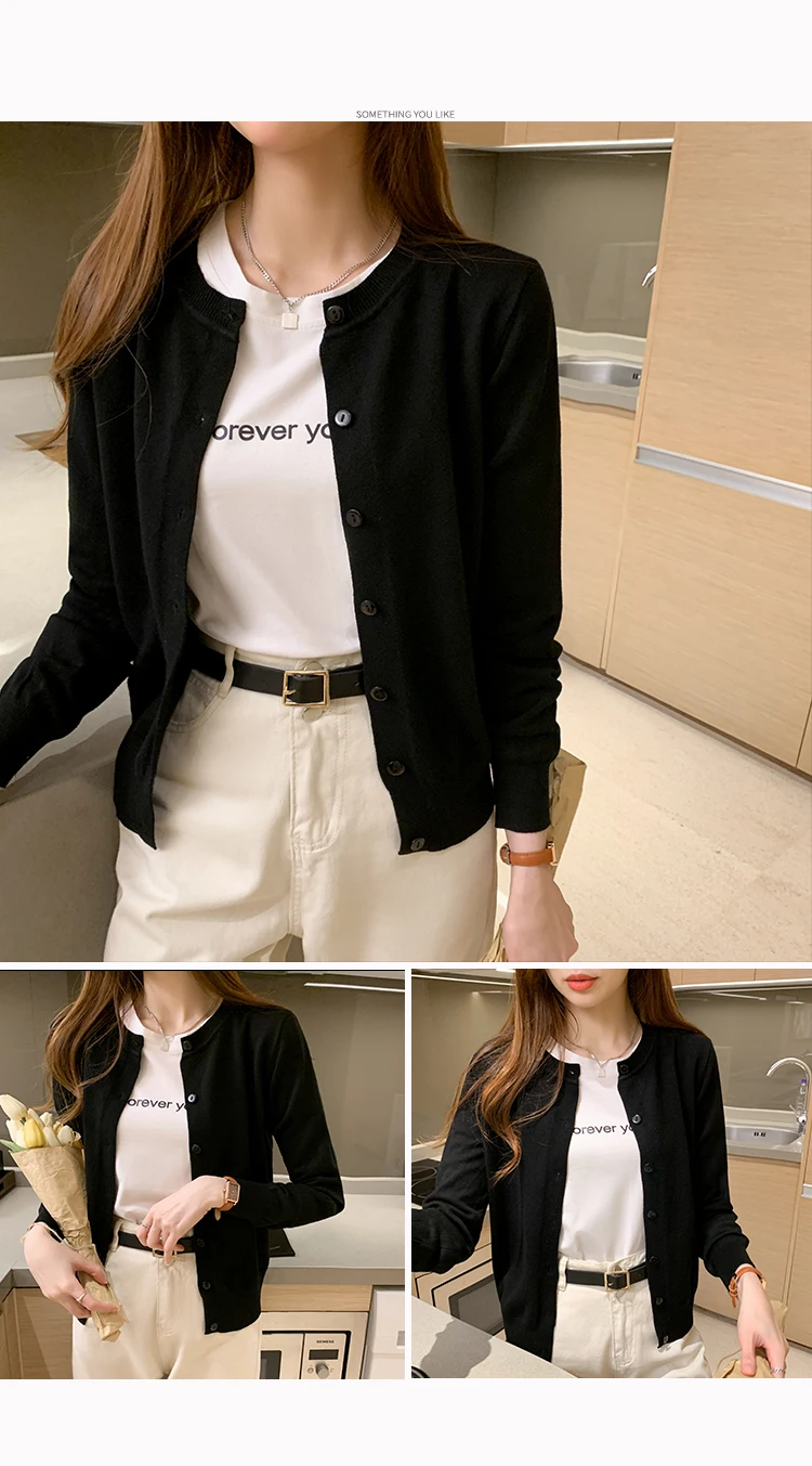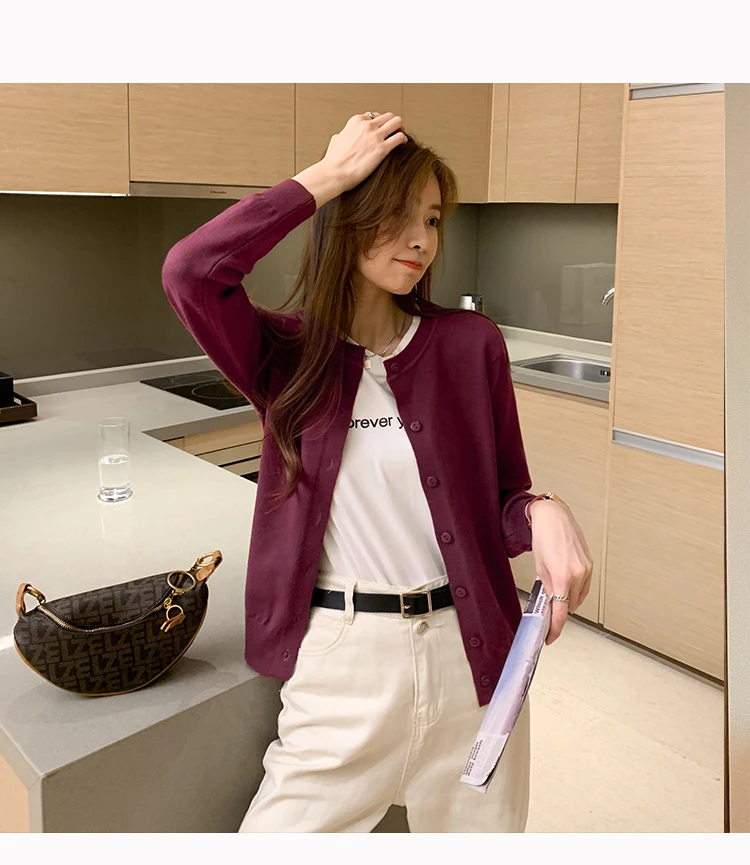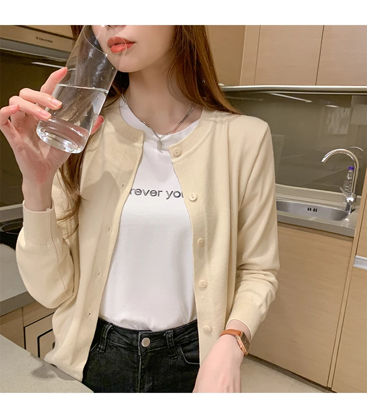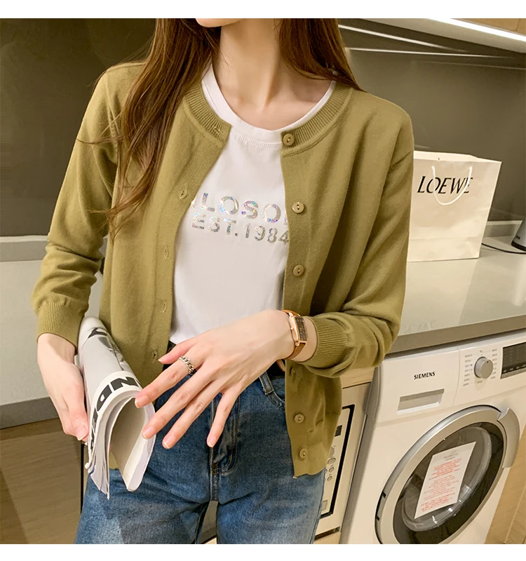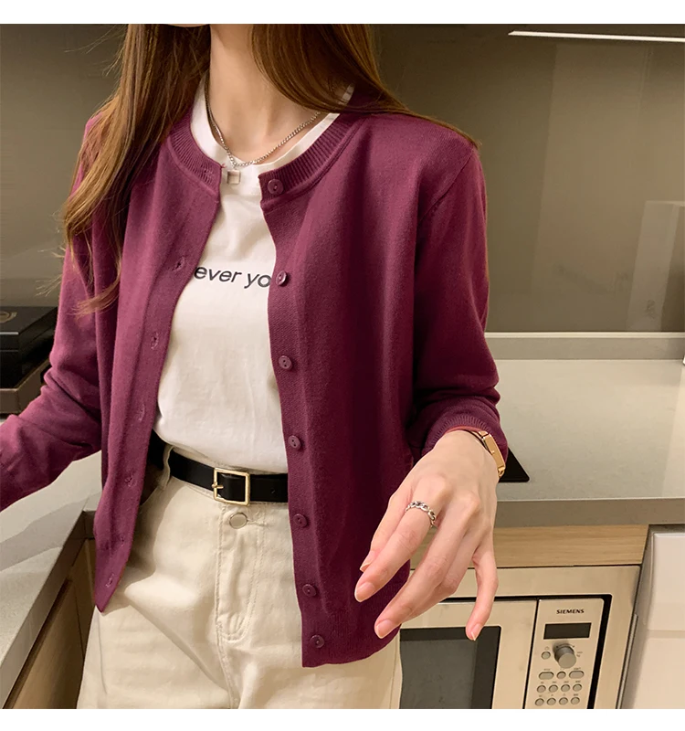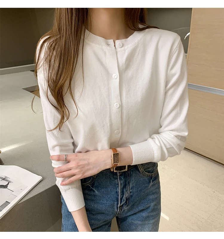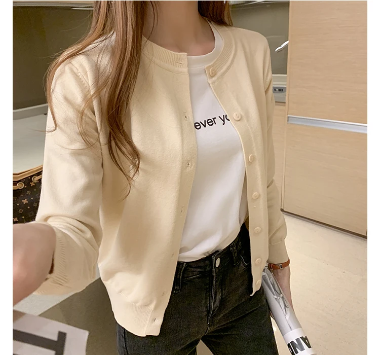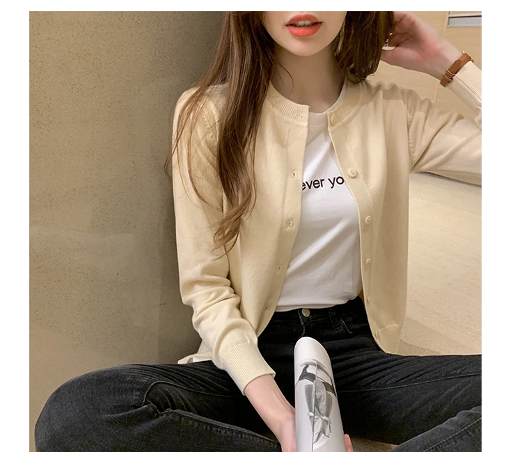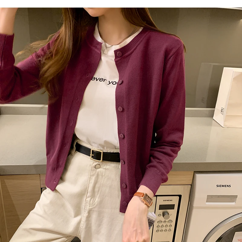 AOSSVIAO Women Knitted Cardigan Sweater 2025 Autumn O-Neck Casual Cardigans Woman Solid Color Slim Korean Versatile Tops