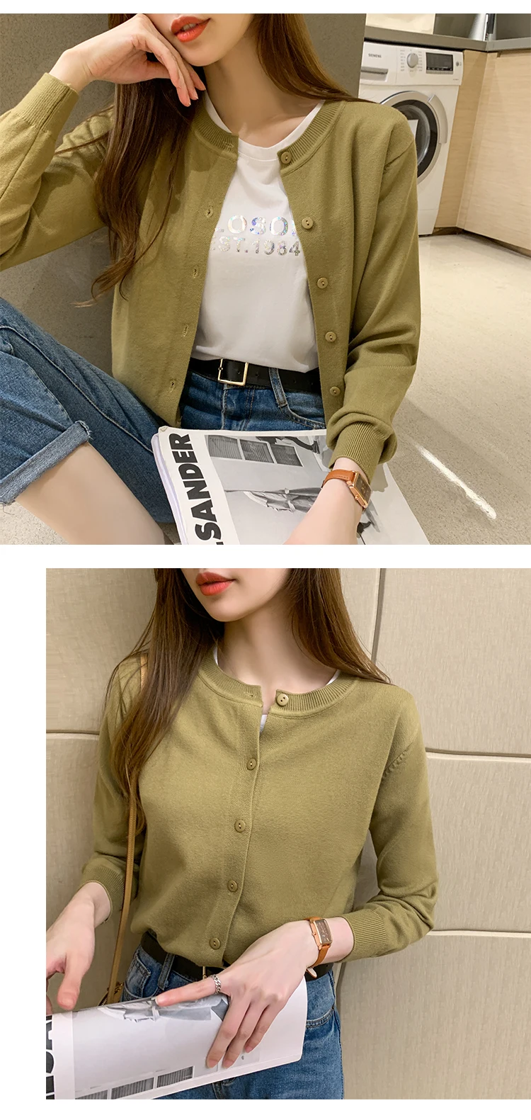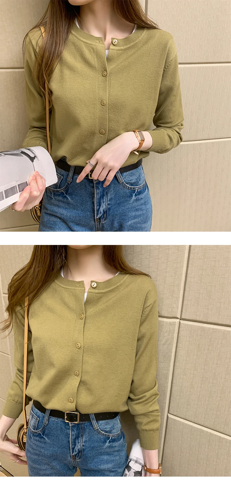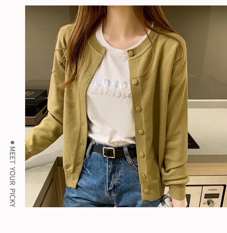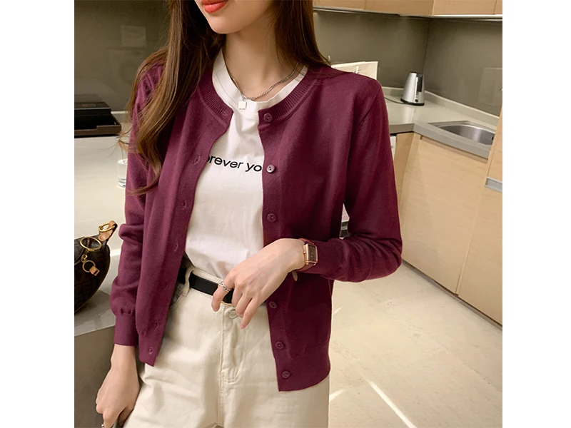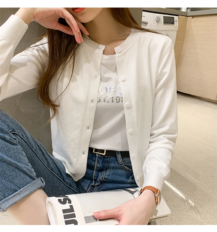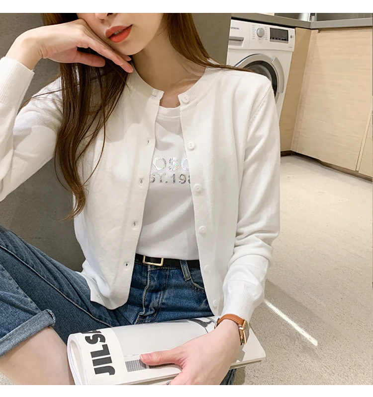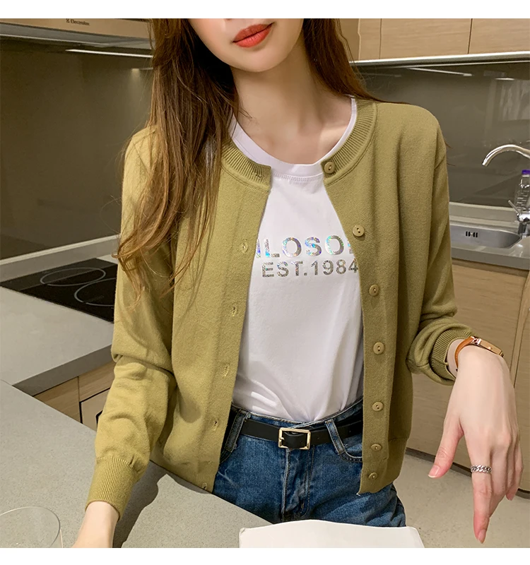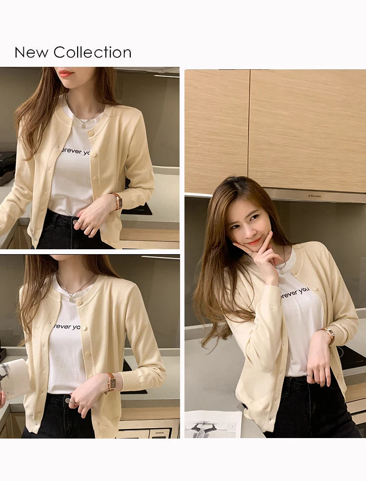 AOSSVIAO Women Knitted Cardigan Sweater 2025 Autumn O-Neck Casual Cardigans Woman Solid Color Slim Korean Versatile Tops