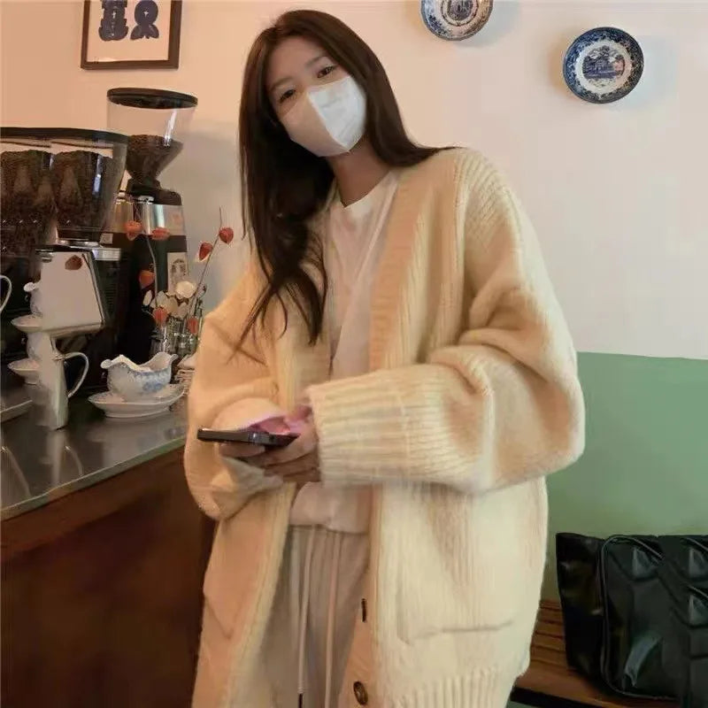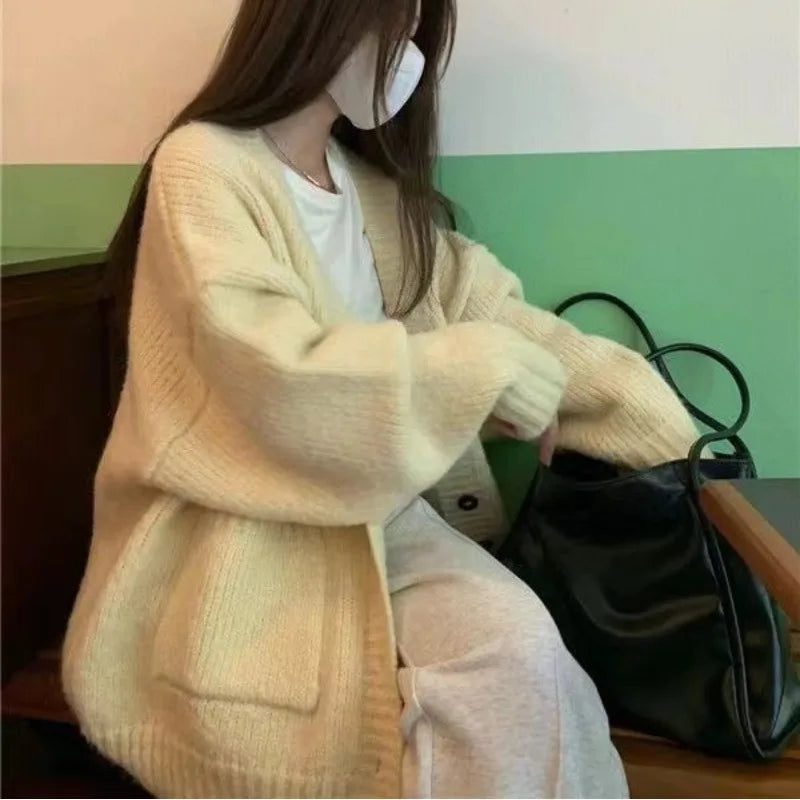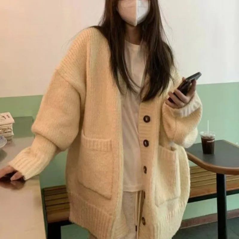 Autumn Winter Fashion Solid Cardigan Sweater Women Knitted Coats Female Long Sleeve Casual Loose Knit Jacket Cardigans Knitwear