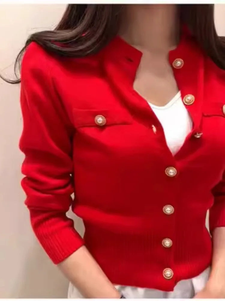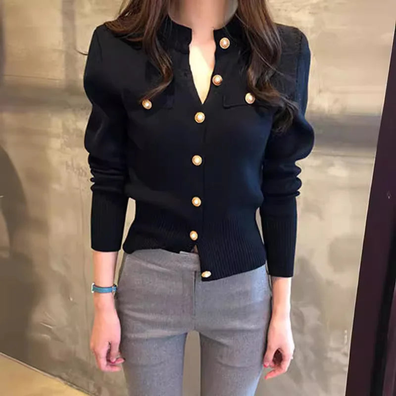 Autumn Winter Long Sleeve Cardigans Top Fashion Women Single Breasted Slim Solid Sweaters Knitted Korean Warm Commute Cardigan