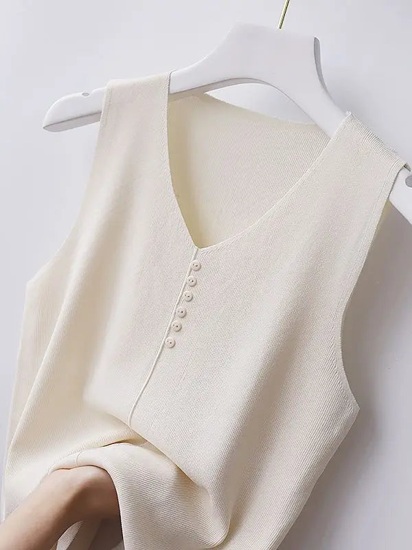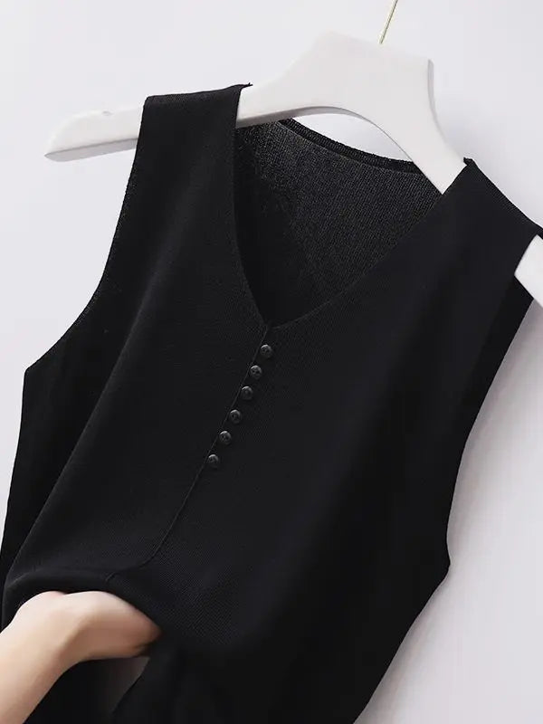 Knitted Vests Women Top V-neck Solid Tank Blusas Mujer De Moda 2025 Summer New Fashion Female Sleeveless Casual Thin Tops
