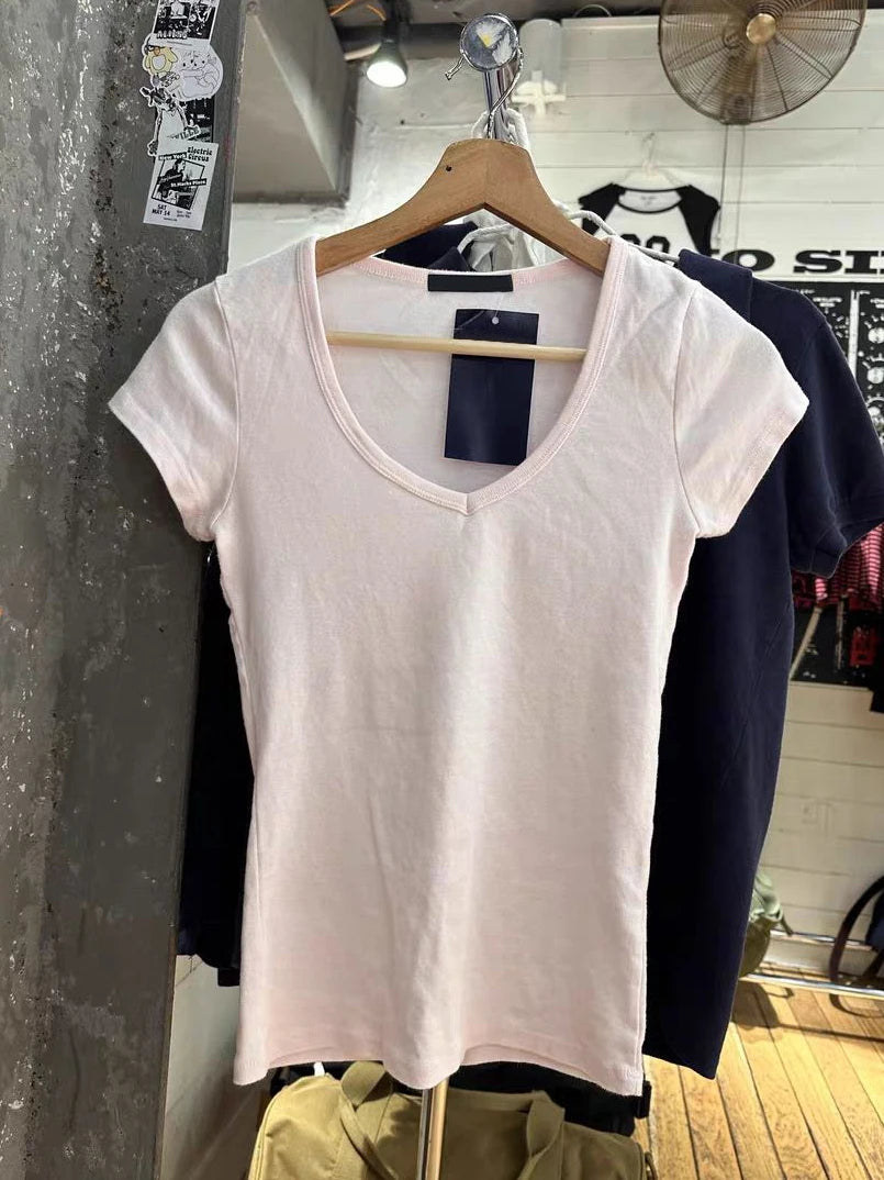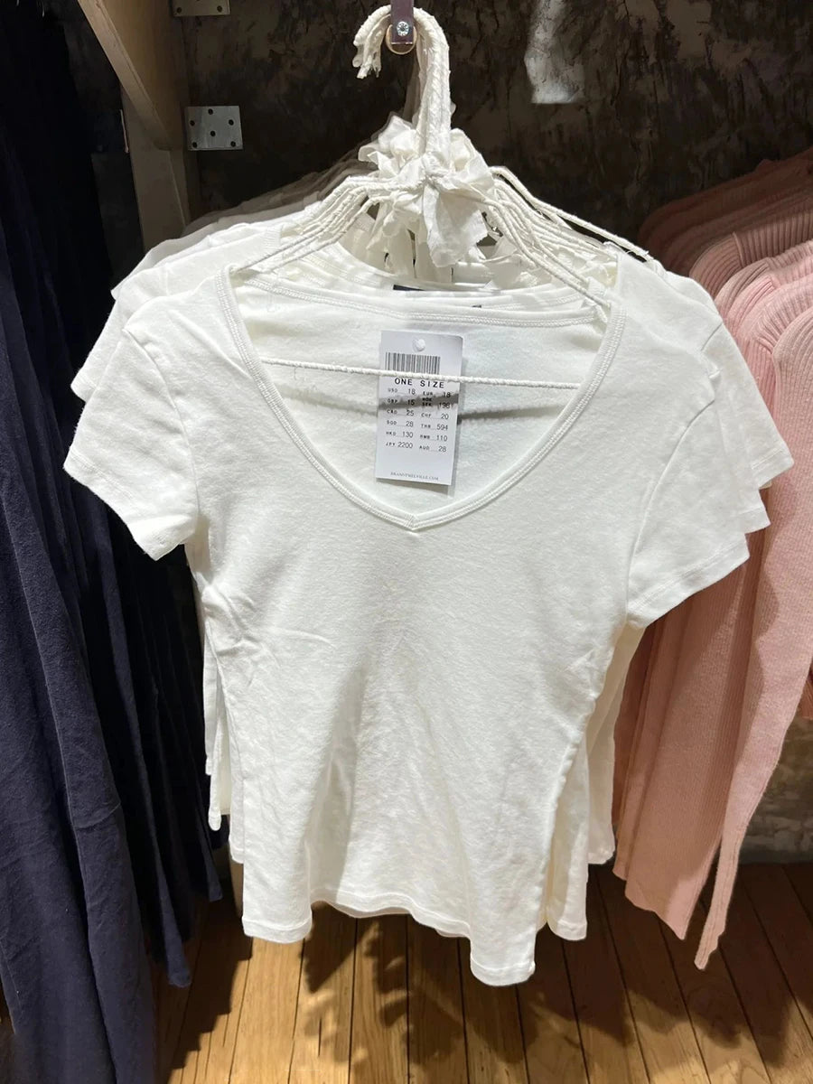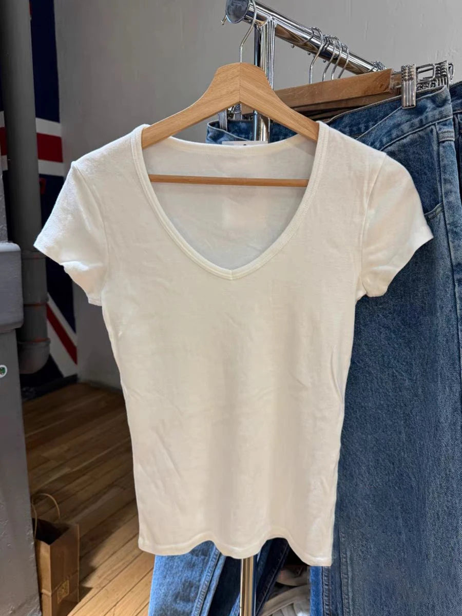 White Cotton Basic Slim T-Shirt Women Summer Short Sleeve V-neck T-shirts Female Casual Simple All-match Tee Shirt Y2k Tops