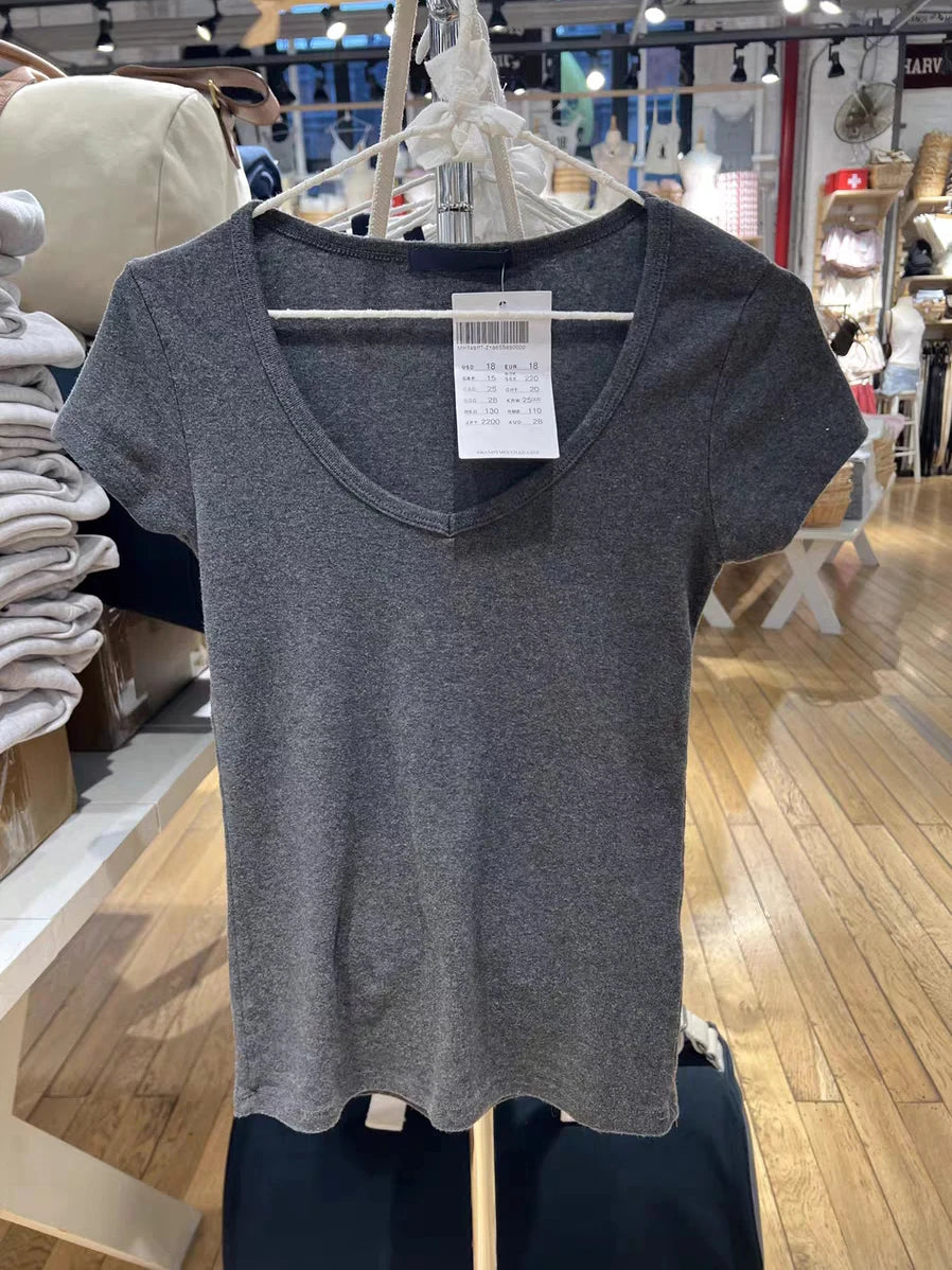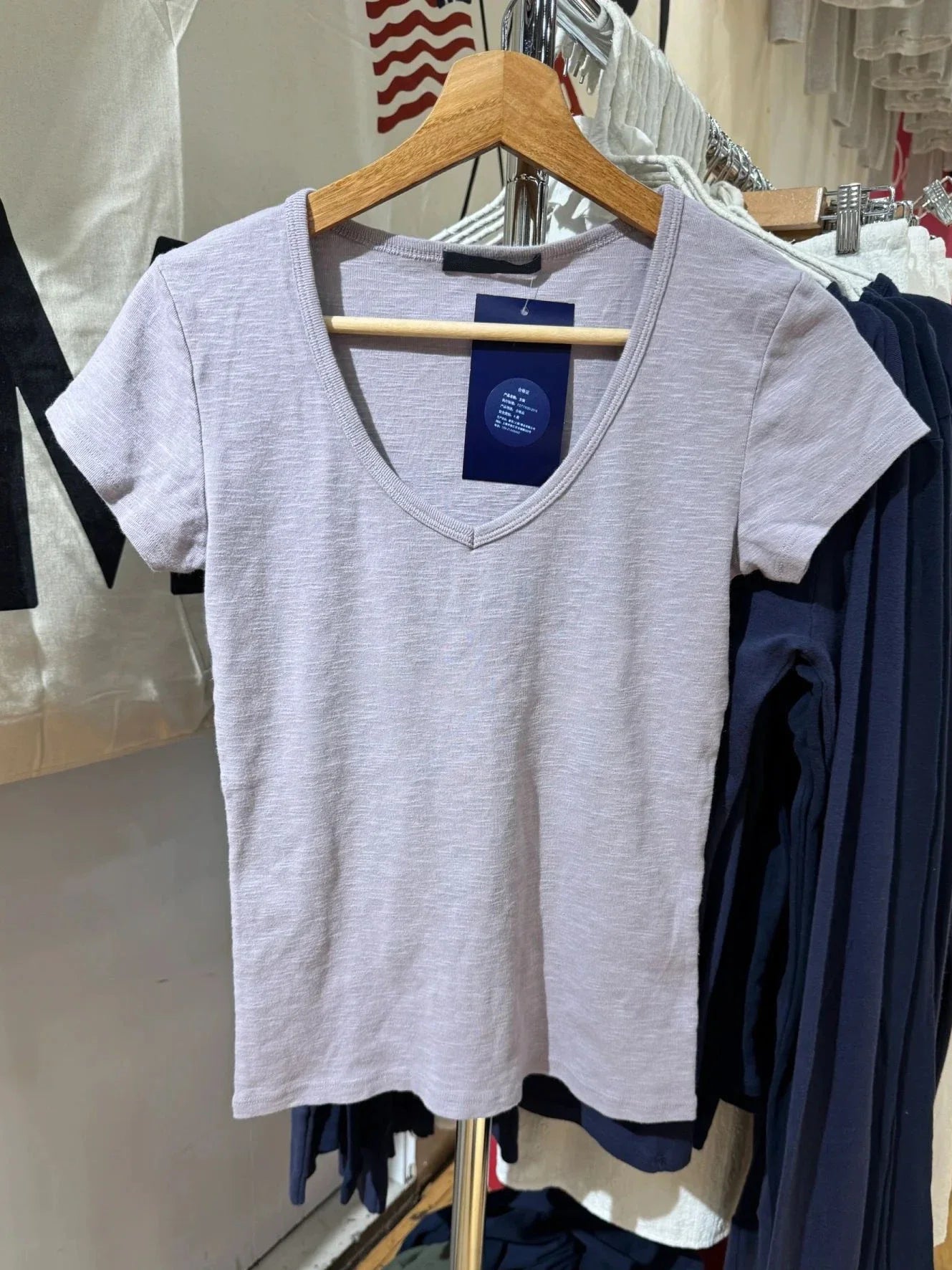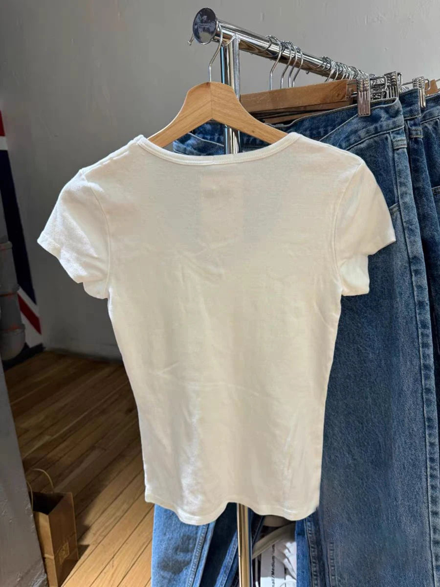 White Cotton Basic Slim T-Shirt Women Summer Short Sleeve V-neck T-shirts Female Casual Simple All-match Tee Shirt Y2k Tops