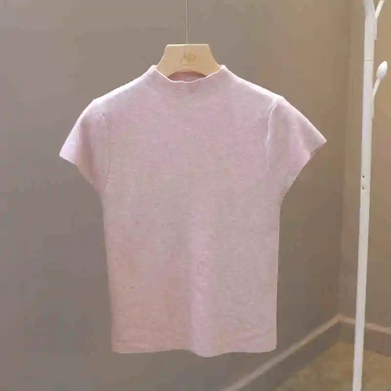 Woman Clothing Short Sleeve T-shirt Slim Fit Tops Female O-Neck Knitted Sheath Tee Shirt Street Wear Sex Sporty 2025 Y2K New