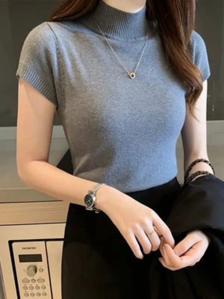 2025 Fashion Woman Pullovers Short Sleeve Autumn Tops Women Turtleneck Knitted Sweater Korean Style Elegant Solid Slim Tops