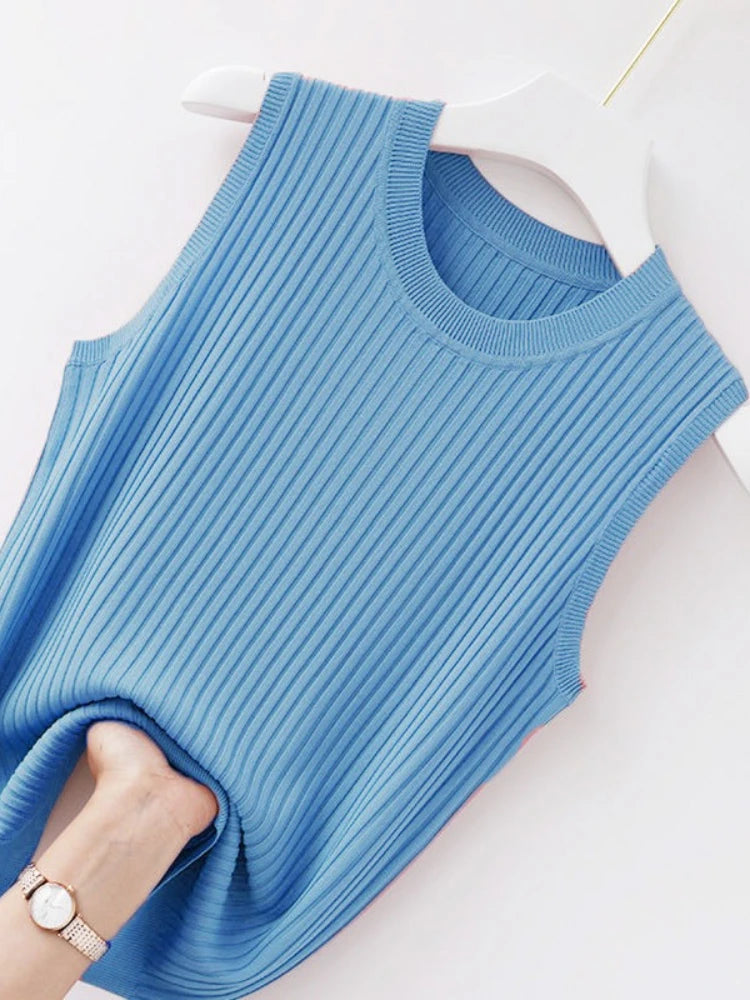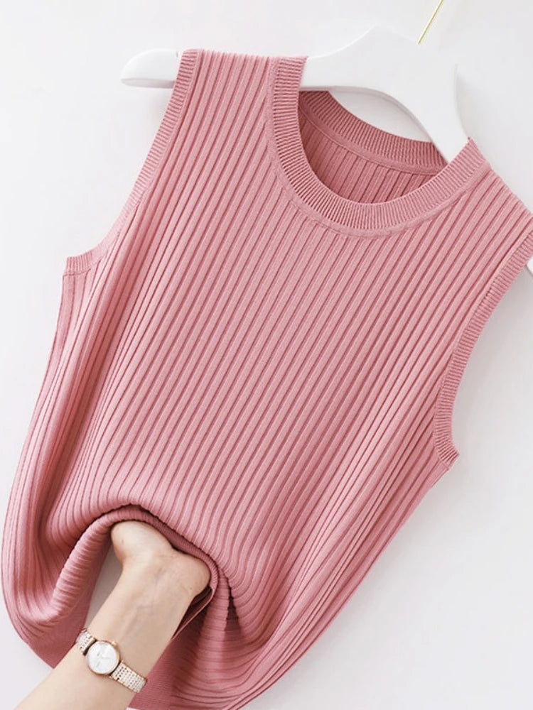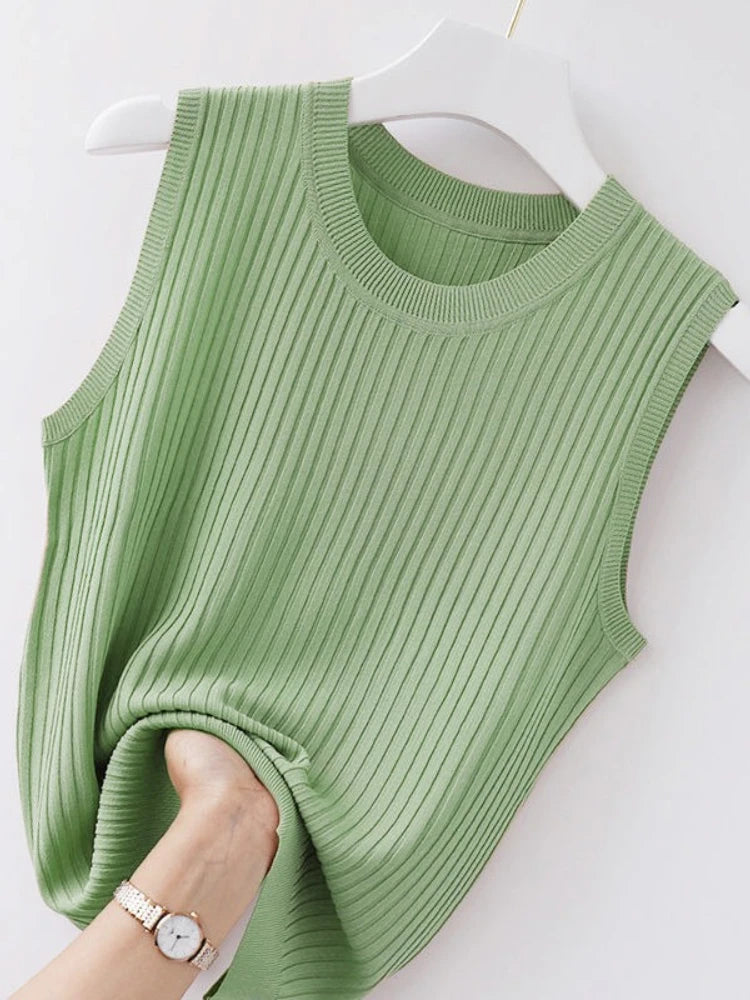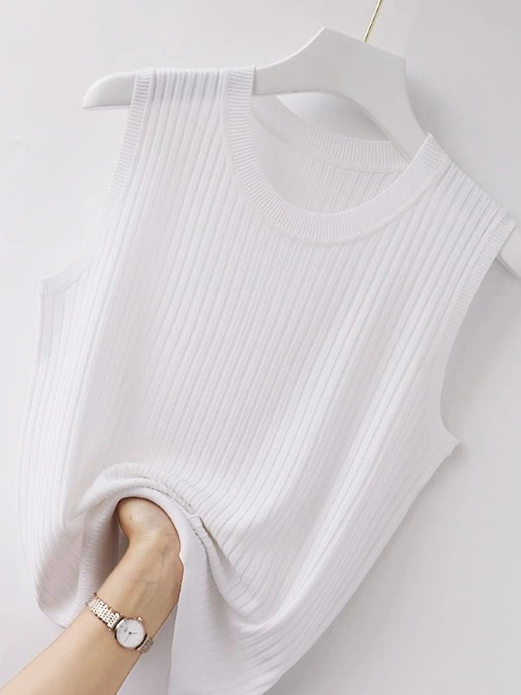 2025 Women Comfortable Solid ColorCamisole Laides Summer Bottoming WhiteShort Knitted Sleeveless Top