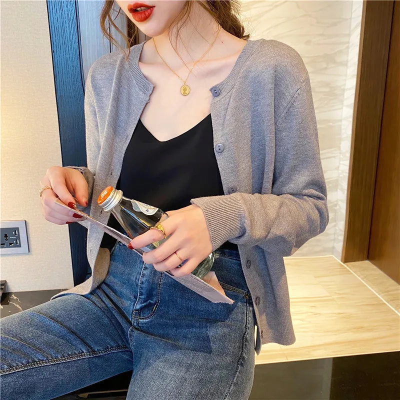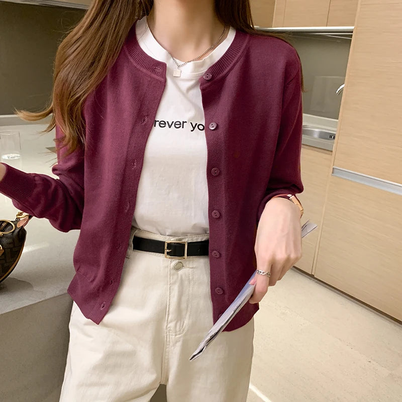 AOSSVIAO Women Knitted Cardigan Sweater 2025 Autumn O-Neck Casual Cardigans Woman Solid Color Slim Korean Versatile Tops