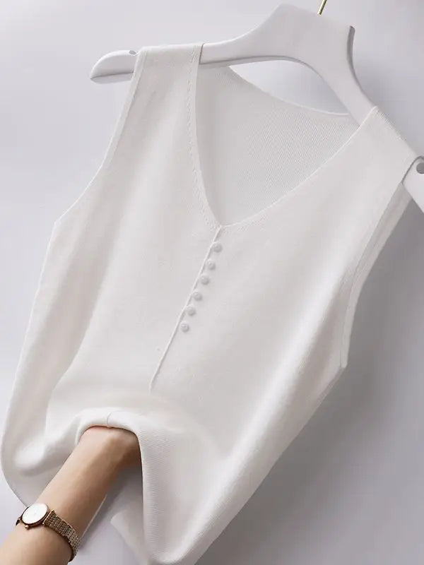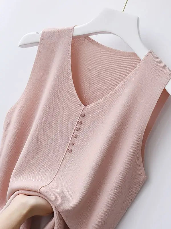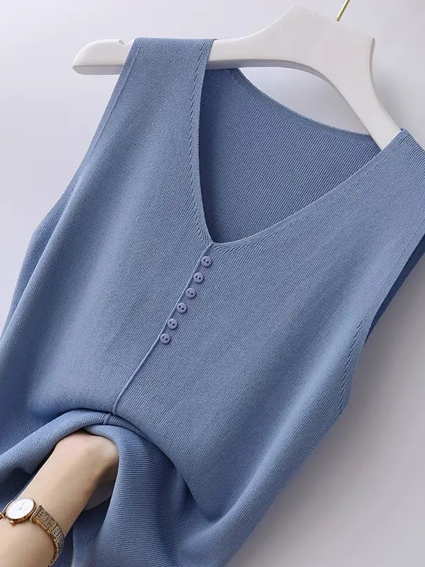 Knitted Vests Women Top V-neck Solid Tank Blusas Mujer De Moda 2025 Summer New Fashion Female Sleeveless Casual Thin Tops
