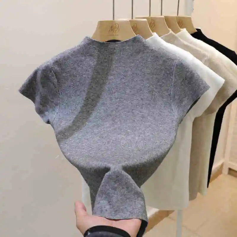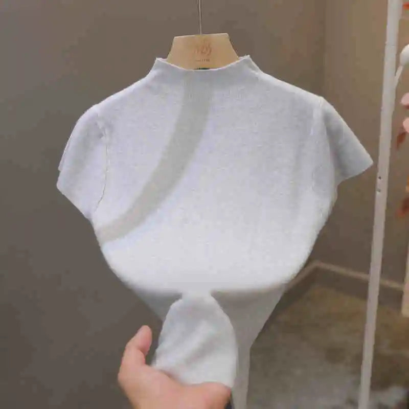 Woman Clothing Short Sleeve T-shirt Slim Fit Tops Female O-Neck Knitted Sheath Tee Shirt Street Wear Sex Sporty 2025 Y2K New